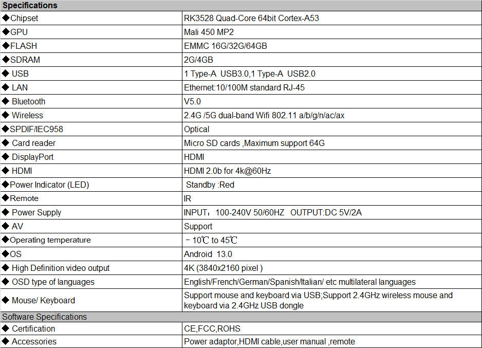 Interface Type: USB,WIFI,HDMI, coaxial, network interface